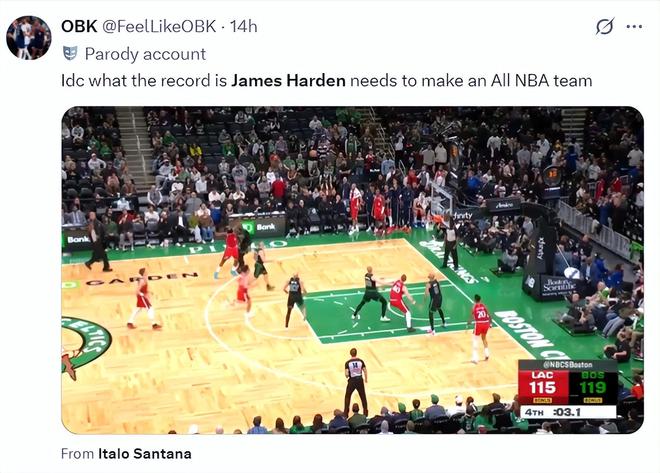 快船媒体:为什么没有人去谈论哈登惊人的巅峰呢?