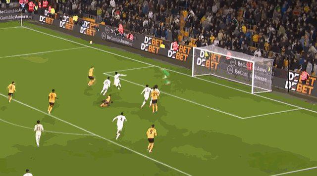 伤停补时阶段,狼队在禁区内制造混乱,无人盯防的沃尔费挑射将球打进。狼队3比4再追一球。